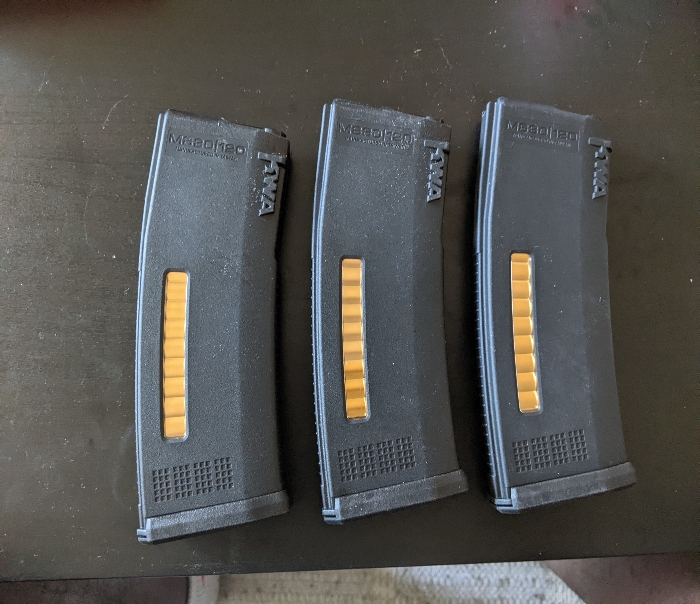 3 new KWA MS120C mid cap magazines. Can be filled to 120 rounds or 30 rounds. Tried to use them one time and they did not feed in my KWA T10 or T6 as these are for specific rifles. Please check the Evike page for compatibility.