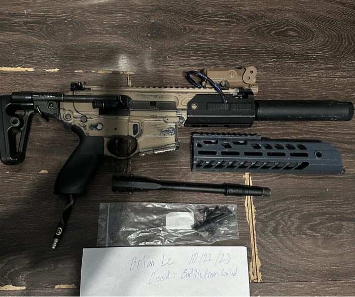 Converted a MCX body into a rattler and gave it a paint job. You buy as is. The upper has been chopped a little to fit the rattler handguard.