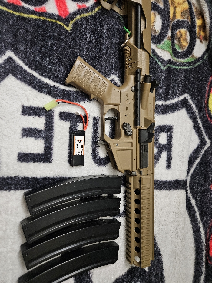 Will come with 4 mp5 mid cap mags and one 7.4v lipo battery.