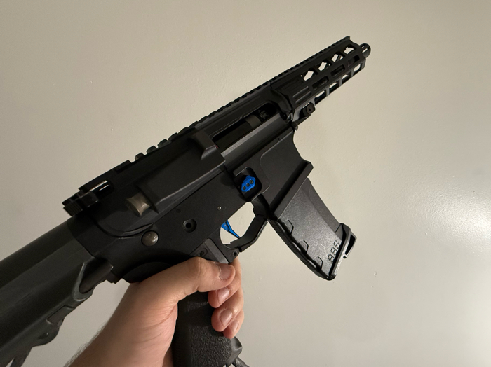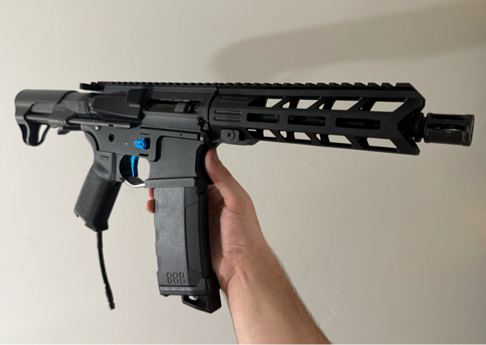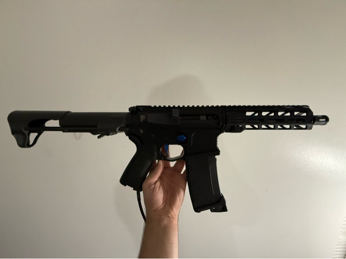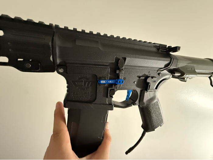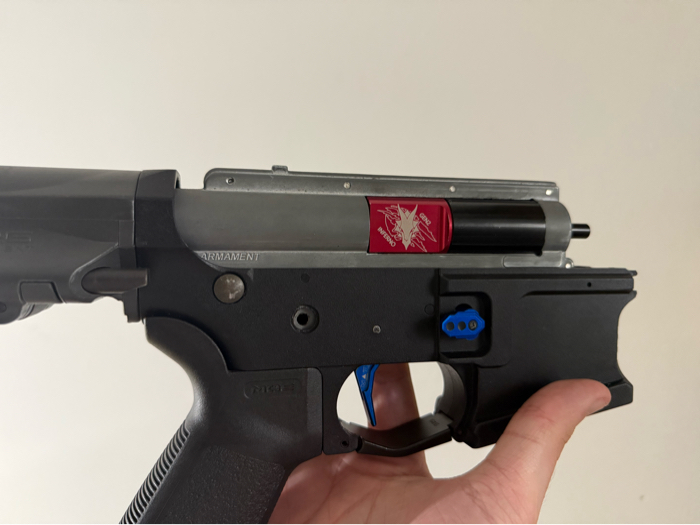 This beautiful rifle has a new engine installed which is an inferno Gen 2! Has a verity of upgrades starting with the upgrade inner barrel, then a Black Maxx Hopup Unit which is the best in the game!! Maxx trigger hair tuned to dominate on the field! Along with yet another Maxx product, the mag release, adds a nice touch to make the whole rifle pop! Also has a MOE Grip