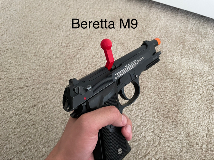 At the moment, this works best on Glock Series pistols and M9 Series pistols, but from the pictures, you can see that it could work with others.