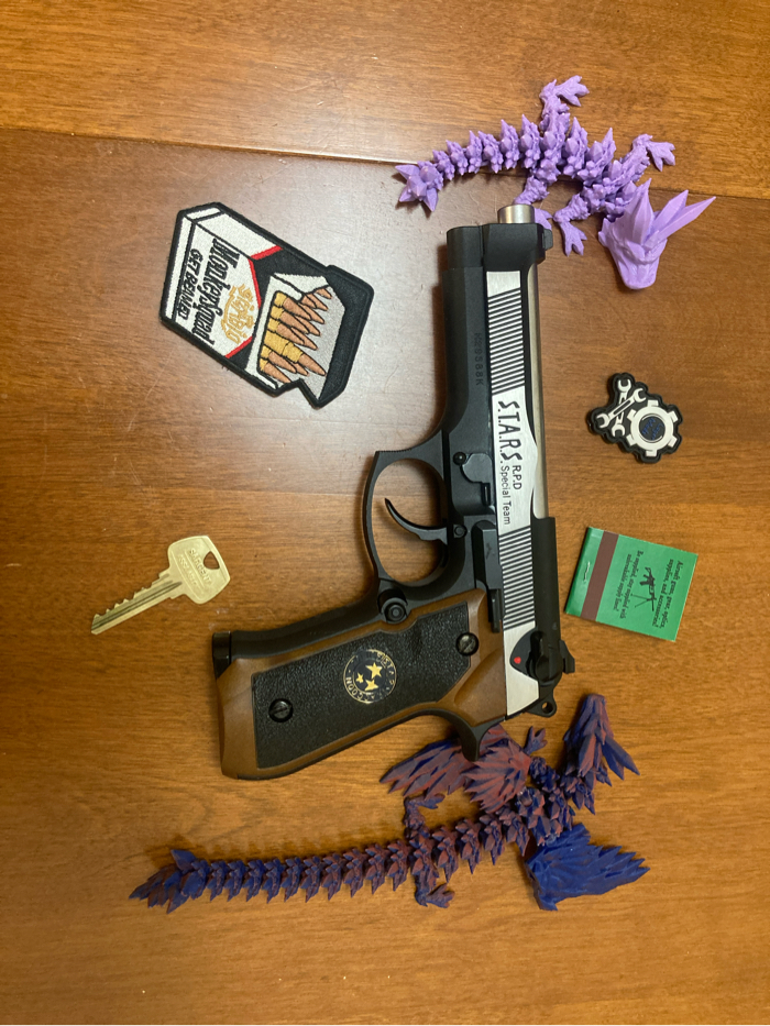 WE Tech M9 Samurai Edge Biohazard Gas Blowback Airsoft Pistol, Black/Brown/Silver