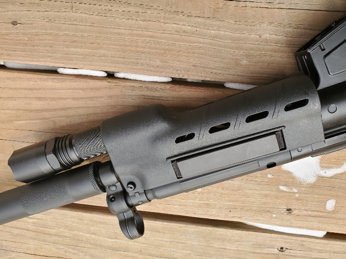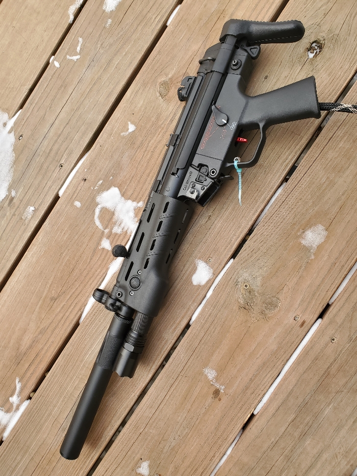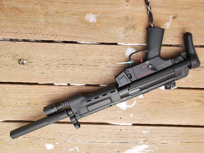 I have 3 of these, keeping one for my own MP5 build. Has a pressure switch on one side and on/off button on the other side to operate the flashlight option - no strobe? Takes 123 batteries. Much wider, deeper than the stock versions for your larger battery options or for your HPA FCU and batteries. Check out Brain Explorer's YouTube...he had a build to house his batteries for his video stuff? $125 each, shipped thru the app.