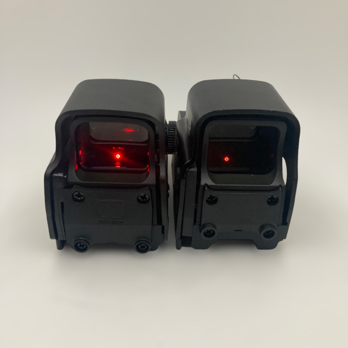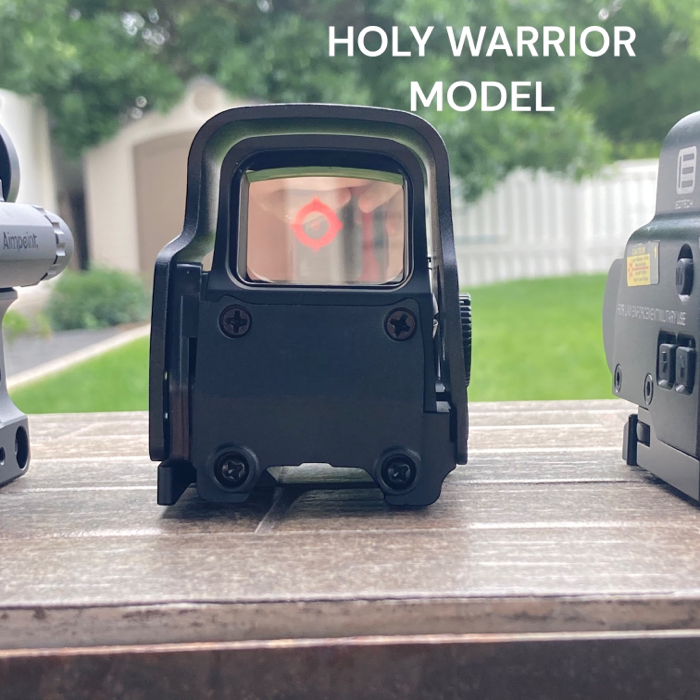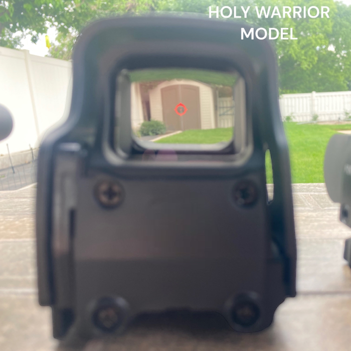 This red dot solves all of those issues. For comparison, these get brighter than EXPS-3 holographic sights from eotech, hold zero even on real steel (tested on an AR for 400+ rounds), and have nitrogen purged class which is rare to find on non premium cost optics. This is a replica sight that do it all, and with a very popular profile is one that can find its way on many builds! For reference I have shown what many on HopUp sell as réplicas compared to the holy warrior one, both are shown with the same battery on the highest brightness setting, through this you can see the holy warrior superior glass quality, brightness intensity, non fuzziness of reticle, and better light transmission.