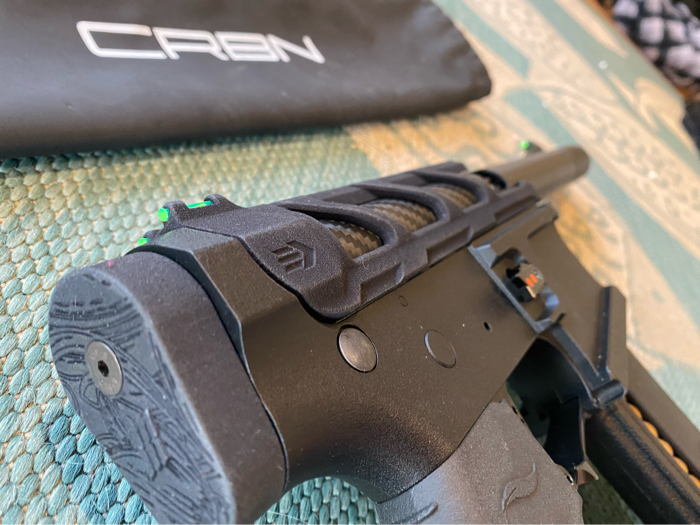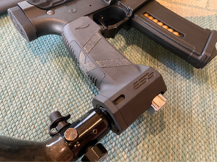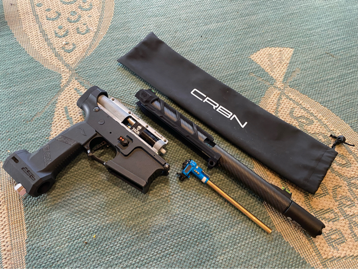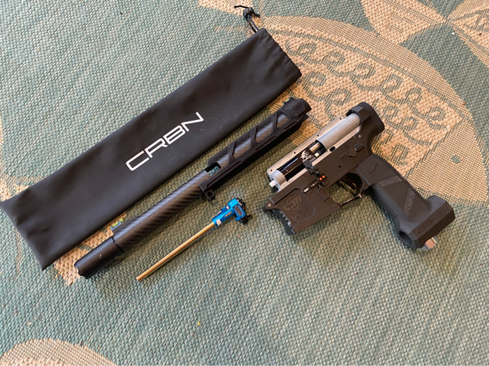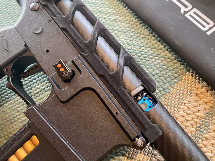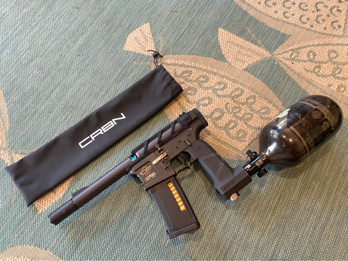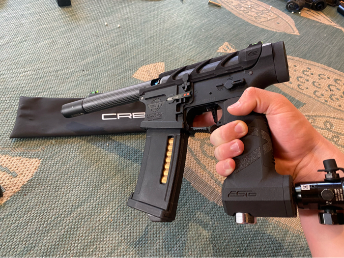 If you want to take your speed softing to the next level, this is the gun for you. This is a fully build Monk/Airtac customs Carbonfiber ESG. Without airtank it weights in at just over 2lbs. This is build has only been used once on the field to test it out, other than that has only been used for testing and tuning in the shop. It has a super ergonomic 0° ESG grip which making handling this gun very easy. It shoots 350fps at 110psi with a .20g bb and up to 60 rounds per second on full auto. It’s an amazing gun and a very unique one in my collection. Comes as shown but without the tracer, airtank, or magazine. Tracer unit, battery charger, battery, fcu, and airtank can be added for extra.