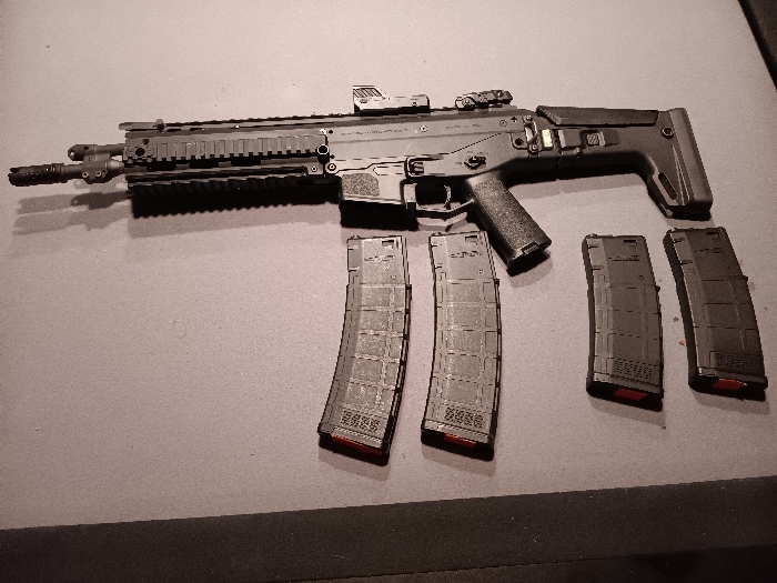 Hello all I'm selling my magpul PTS masada ACR. This is the OG version not the A&K masada. This gun shoots great and comes with 4 mid caps and a handful of batteries. Comes with a custom mas Grey handguard and fixed stock.