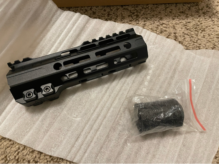 Used but in very good condition still, only a couple small knicks but hardly visible. Comes with handguard and barrel nut. 6.7” length (Black)