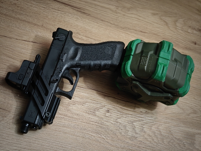 In like-new condition. Snappy semi, with a crazy full-auto ROF. Never run out of BBs with the drum mag.