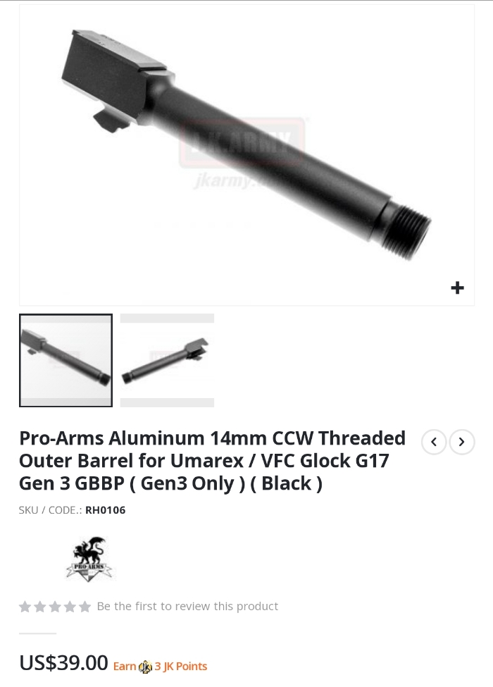 - Pro-Arms 14mm- CCW Threaded Outer Barrel