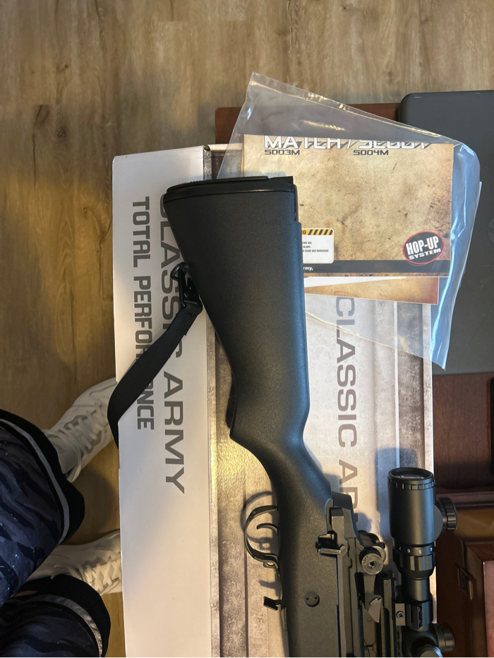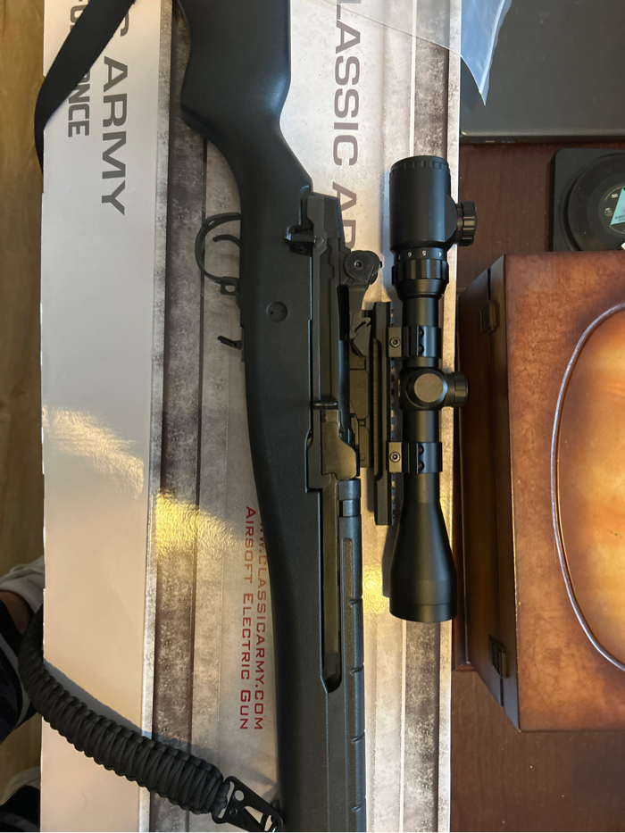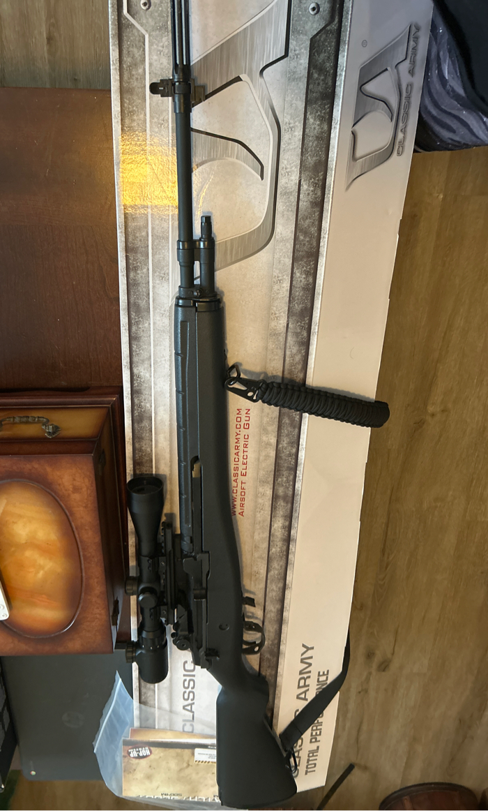 Brand new classic army M14 (Newest Version) with scope mount and scope, is wired to Dean’s with inline mosfet.