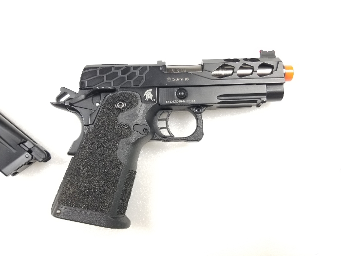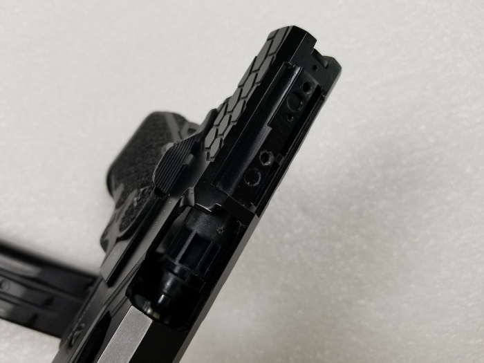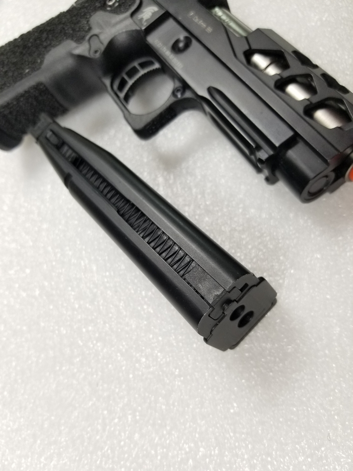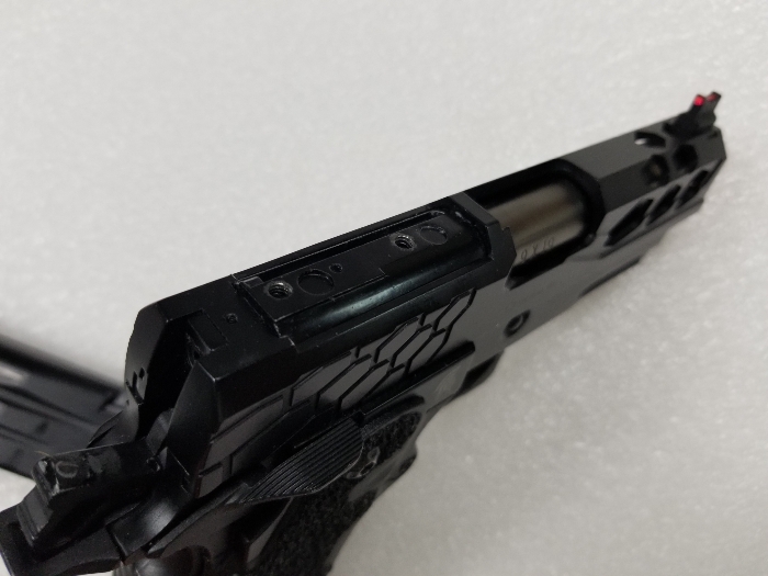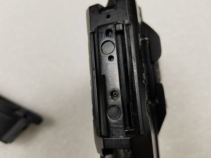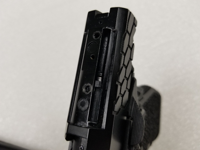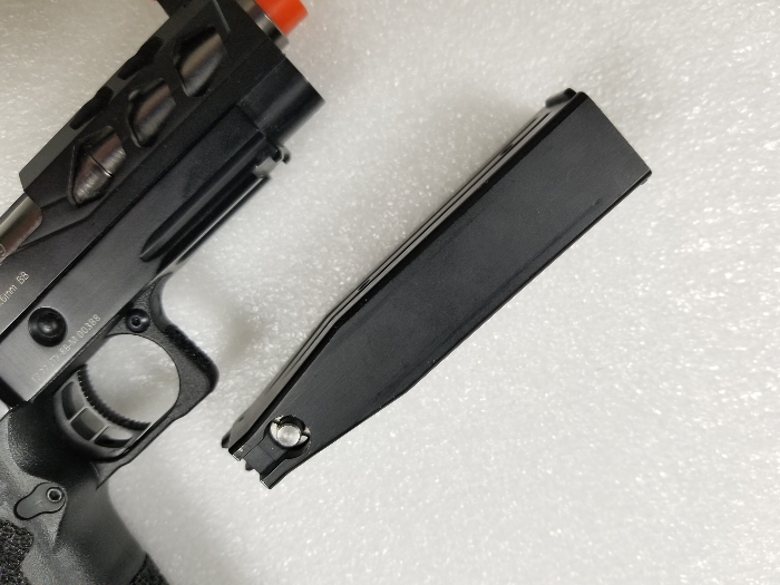 It is missing the RMR mount on top of the slide, which also houses the nozzle return spring. The spring is missing too. It does seem to work fine as it is, but I assume issues will eventually arise if you use it without the nozzle return spring... for this reason consider it boneyard. The magazine is missing a base plate but works properly. Slide catch on empty works. I will offer a shooting video on this one but please only serious inquiries.