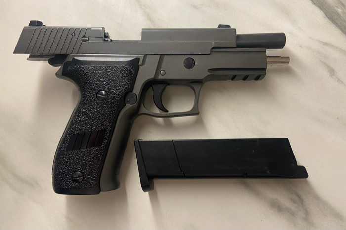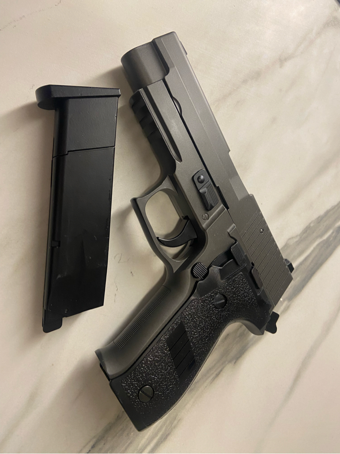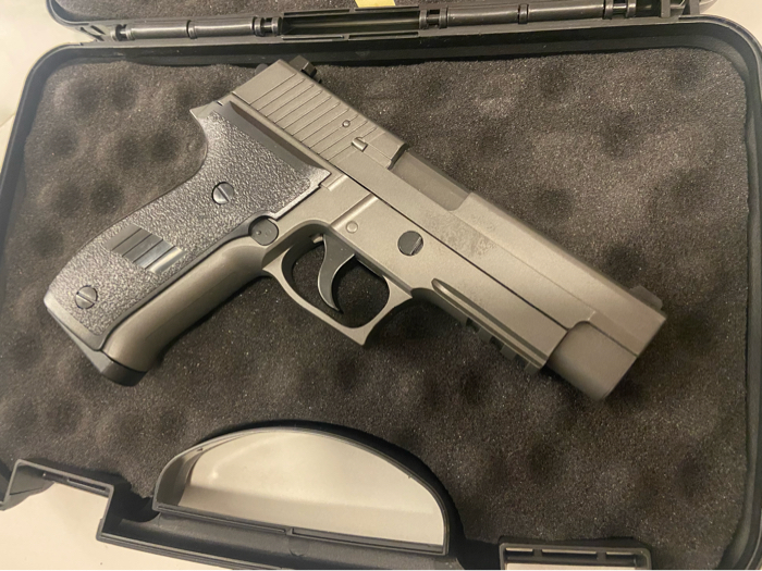 Selling a pristine condition Sig Sauer Style P226 gas blowback pistol. High quality durable reproduction model, constructed of full metal receivers. Looks and feels very realistic. It even disassembles just like the real P226