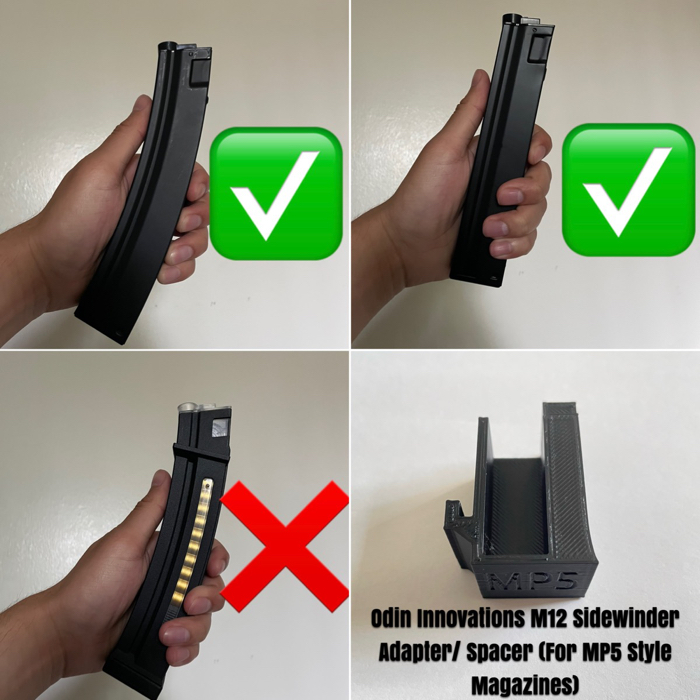 I grew tired of using a normal speed loader for my MP5 magazine so decided to make something that would allow me to use my M12 for my mags. This isn’t so much an adapter as it is a spacer which means that there will be little to no extra bb’s falling out
