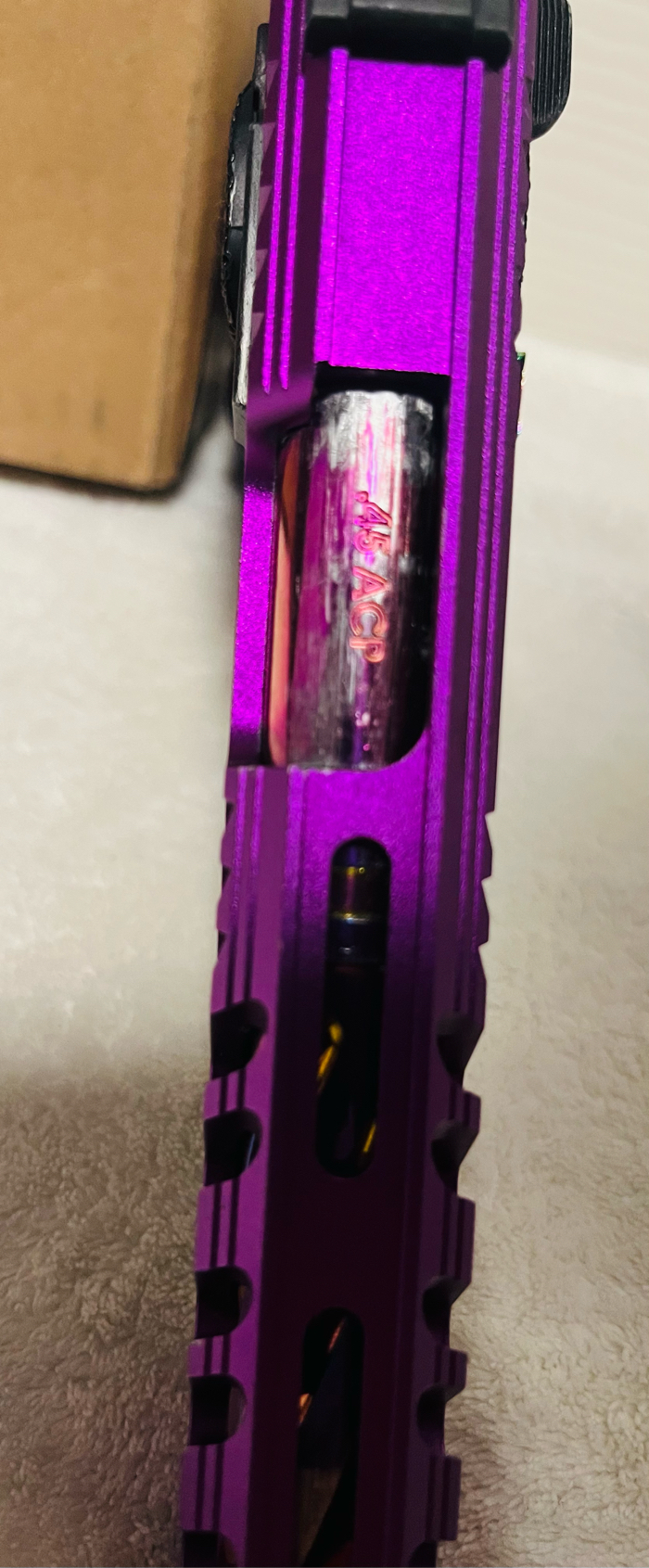 Note- right side missing safety but left still intact and still works. Some scratches on outer barrel.