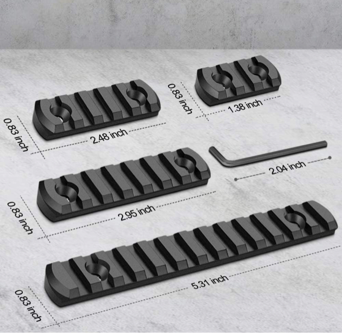 ❖4 sized picatinny rails are lightweight. Now, many accessories are designed for picatinny rail only, these feather weight picatinny rail sections is a perfect solution to mount these accessories on your handguard without adding too much useless weight.