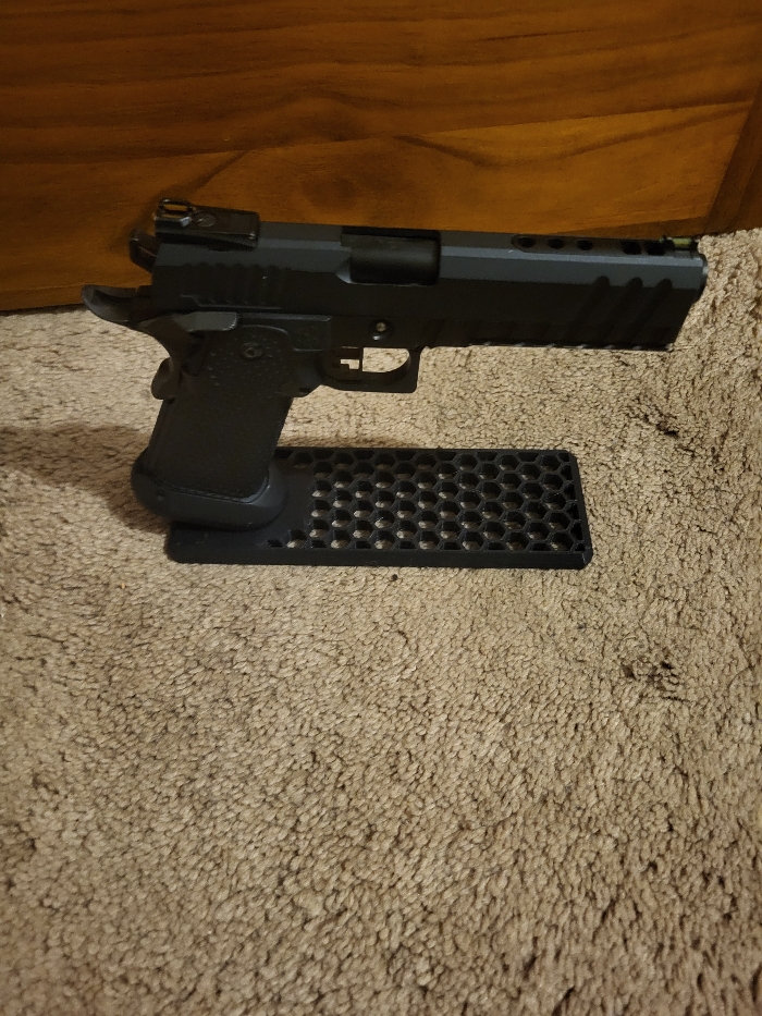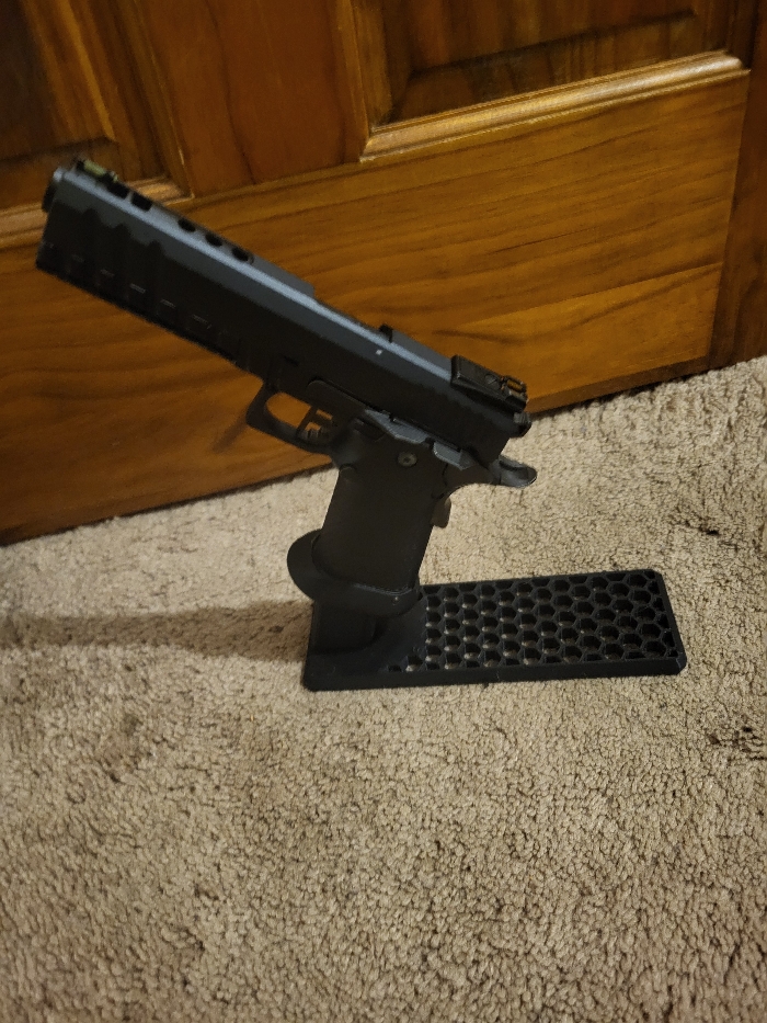 This is a 3D printed hi capa stand. I can print it in other colors. This is the cheapest you will find on the app, I am making very little profit from this. It's super nice to display your hi capa on and looks really clean.
