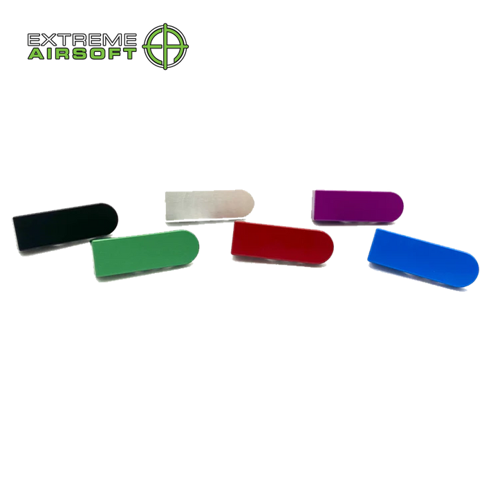 CNC machined aluminum replacement mag release for Gen 4 injection molded Primary Airsoft M4 adapter.
