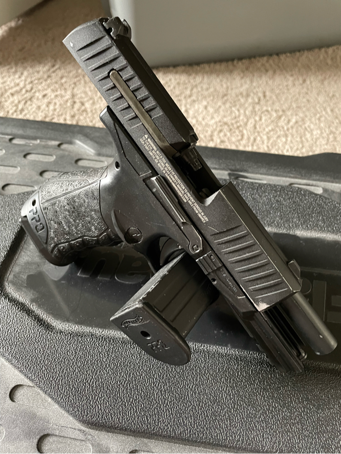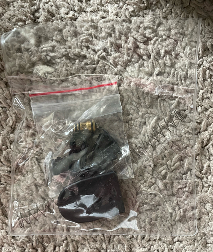 This Walther PPQ M2 GBB pistol has been used fairly. The stock barrel has been replaced with the Maple Leaf Crazy Jet Barrel. In the photo, in the container is the stock barrel. One of the magazines gas valve has been replaced so the valve in the kit is a stock valve. The silicone oil can be used on both plastic and metal parts.