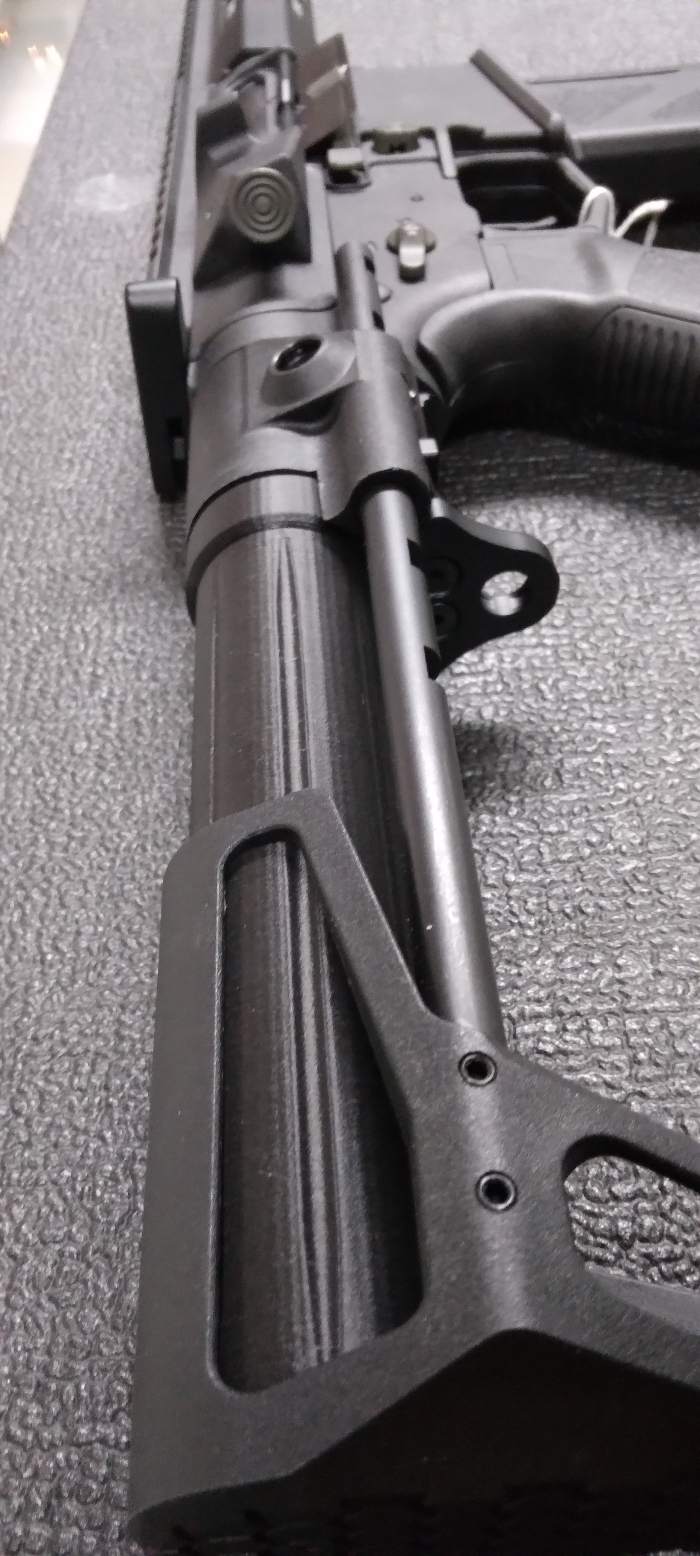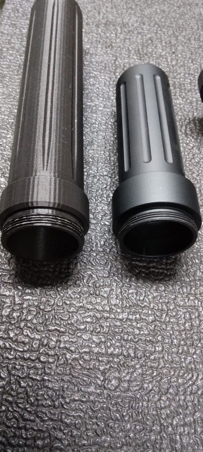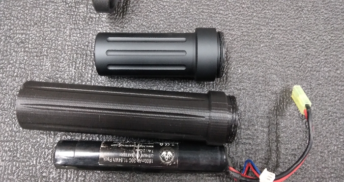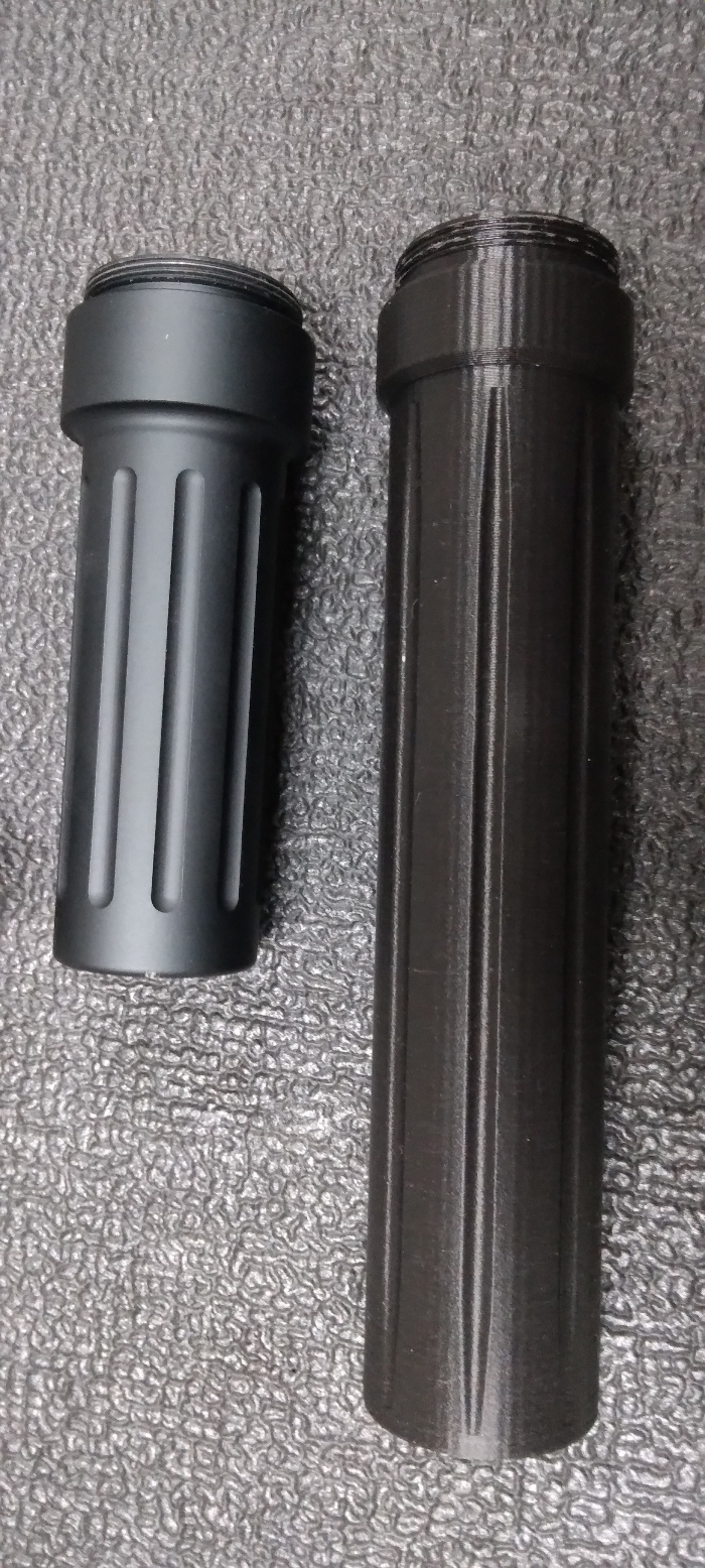 Works with Arcturus Karambit and Arcturus AR03. Pictured beside original short battery cap. Gives you almost double the battery space while still letting you use the original stock.