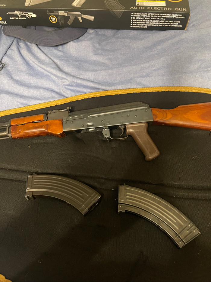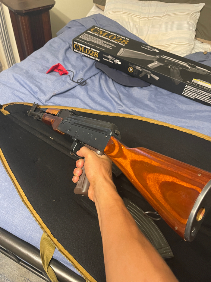 This is a E&L airsoft AKM I’ve had for awhile but never used. It’s all steel and real wood hanguard and stock. Very nice AEG and is perfect for a mile I’m west event or something like that. New these guns were 400 dollars from evike before they were discontinued. Comes with 2 magazines.