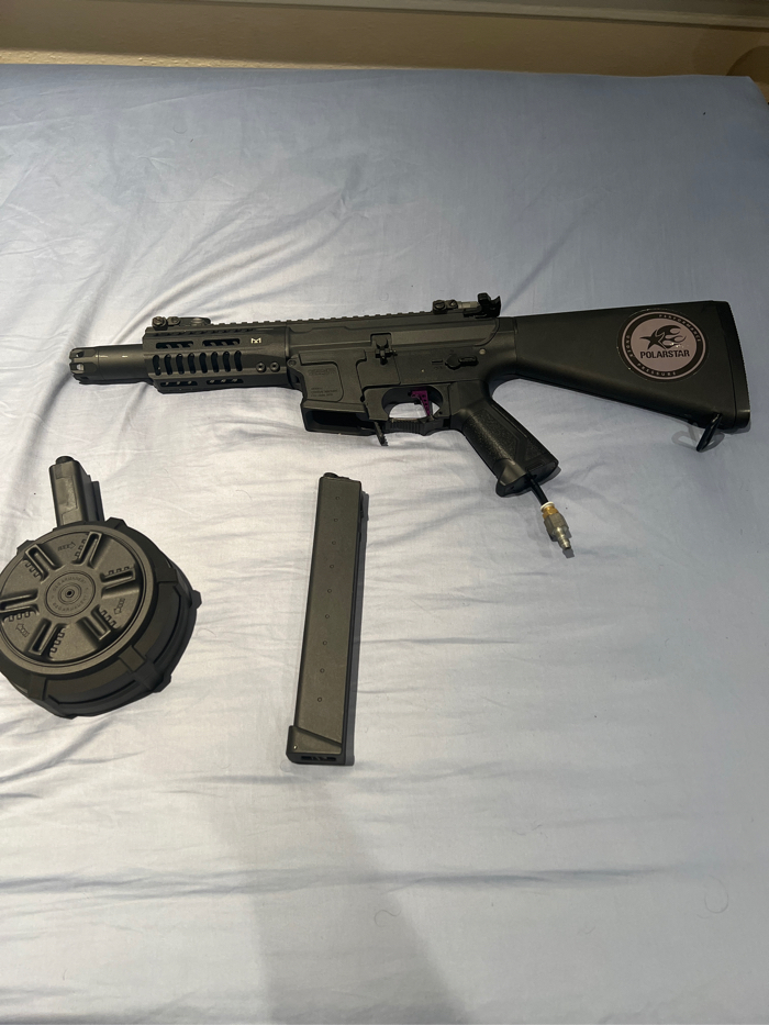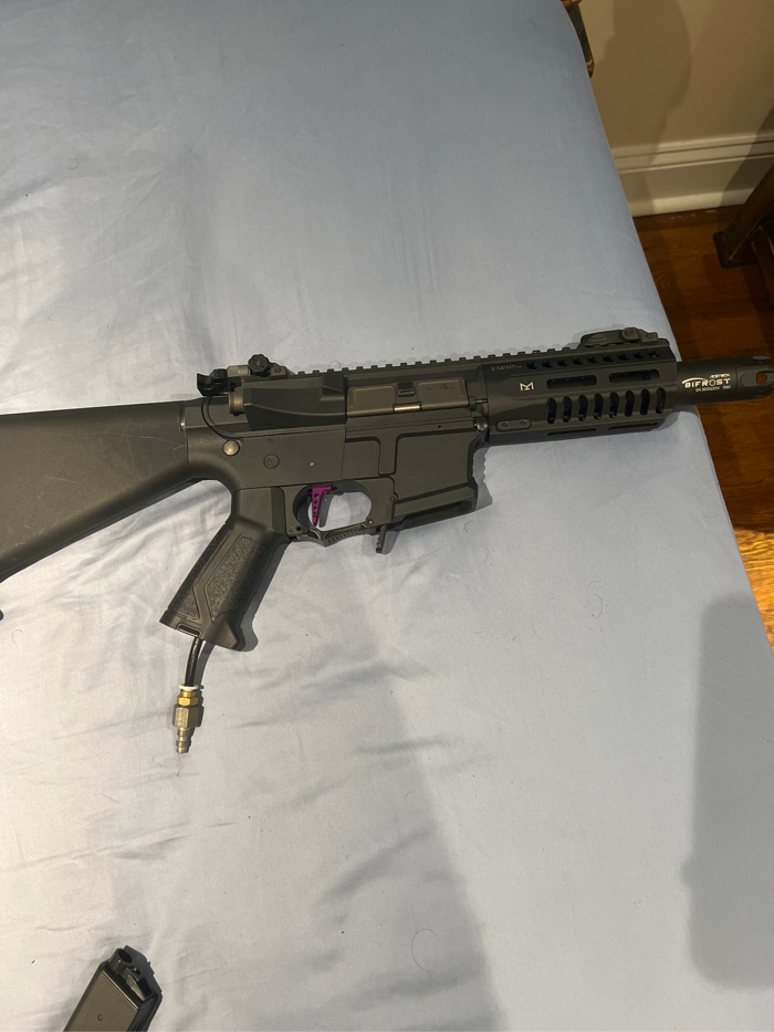 Excellent condition. Comes with a battery, drum mag and standard mag. Speed trigger installed. It has a Acetech bifrost on it and I have the original orange tip piece. Comes with rare stubby stock. NO TRADES