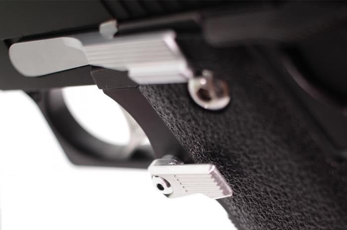Make your Hi Capa reloads easier and faster with the custom magazine catch. Fully adjustable 360 degrees of freedom for ease of releasing your magazines when needed.