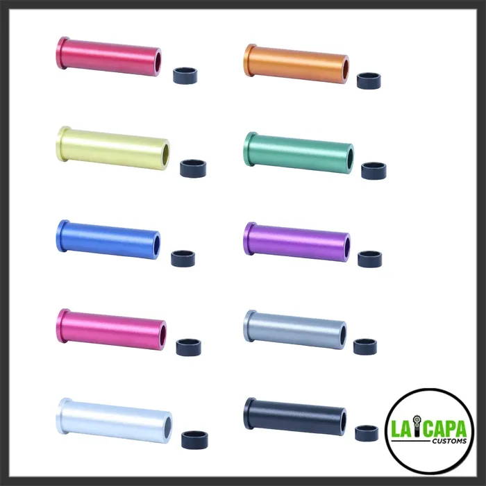 The LA Capa Customs 5.1 guide plug is the perfect piece for any build! It features 12 unique colors for all your color matching needs, and goes perfectly with all other LA Capa pieces. It comes with a Delrin ring for guide rod stabilization, giving an even smoother recoil!