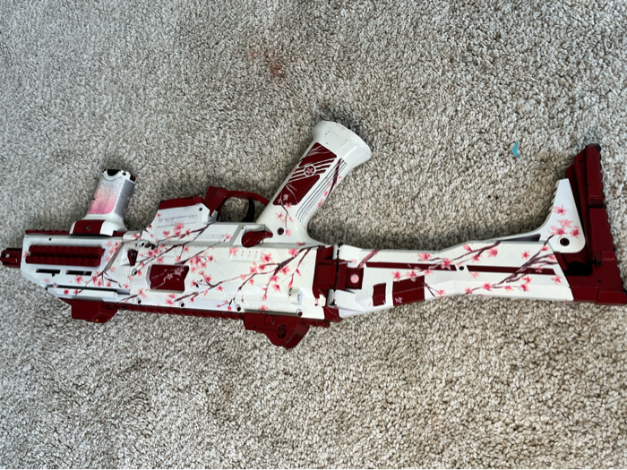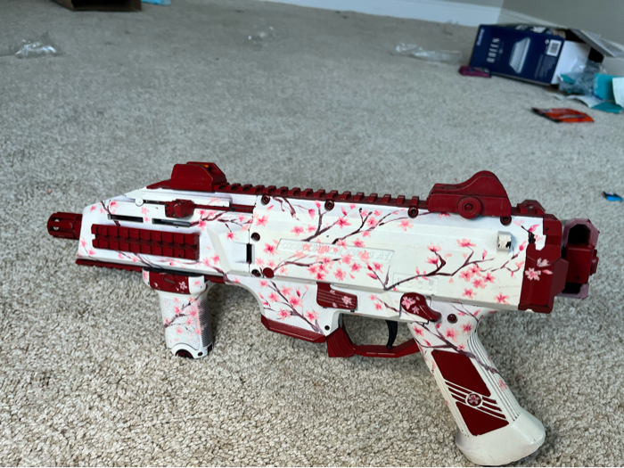 The flash backs of bo2 this iconic camo has been hand painted on to a scorpion evo.