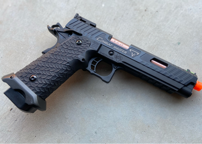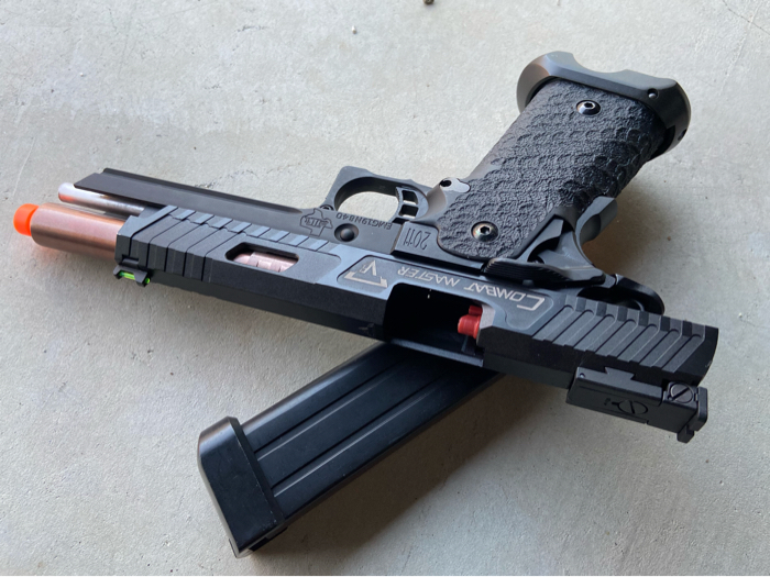 Incredibly high quality design, features highly detailed CNC metal slide, authentic laser engraved trademarks, stippled lower frame and factory upgraded internals. Incredible performance right out of the box, clocking in at 350 FPS with insane accuracy.