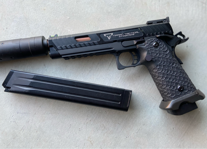 As famously used in the John Wick series, and for Keanu reeves Training for the movie. This is a 1/1 replica of the real model, Taran Tactical 2011 STI Combat Master Pistol.
