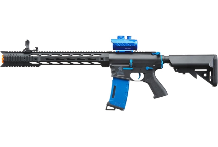 Lancer Tactical Gen 2 M4 SPR Carabina Azul Airsoft AEG Rifle con caja de engranajes de metal completo y mira de punto rojo medio de alta velocidad, batería Nimh de 9.6 V 1600 mAh, cargador, 1000 rondas 0.01 oz BBS incluido