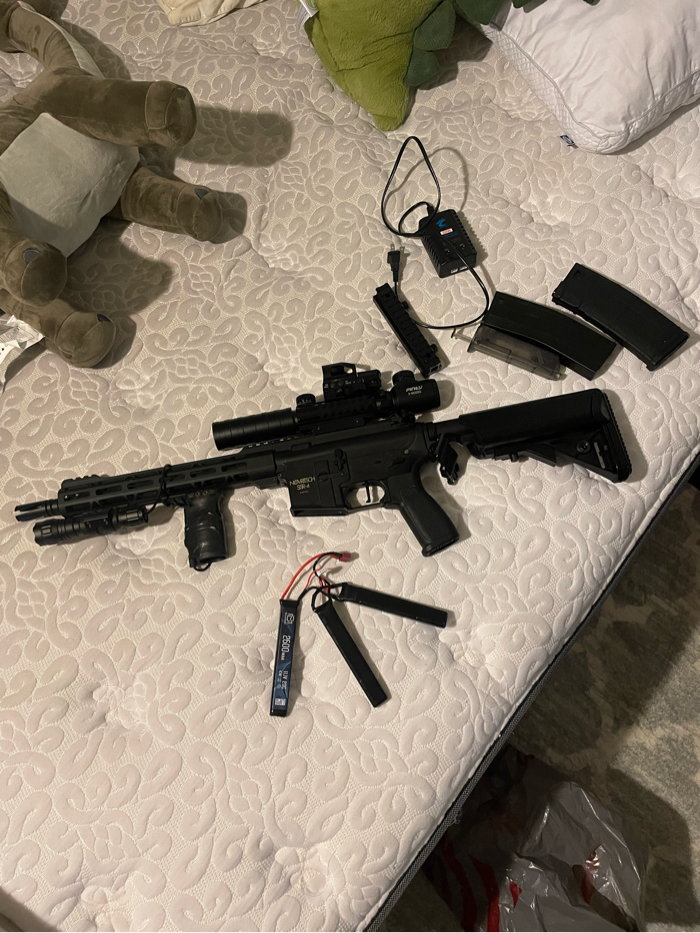 Will also come with full gear, goggles, vest, extra rails, and LED team lights that attach to anything. And everything in pictures.