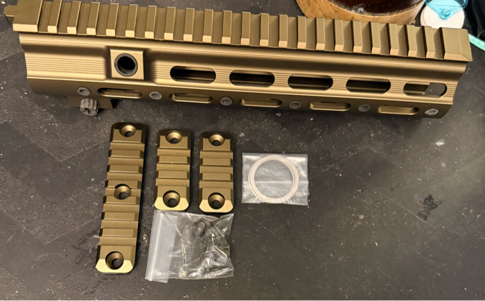 Package Includes: 1x Handguard , 3 Rail Segments, Barrel Nut , Hardware & Outer Barrel Shims