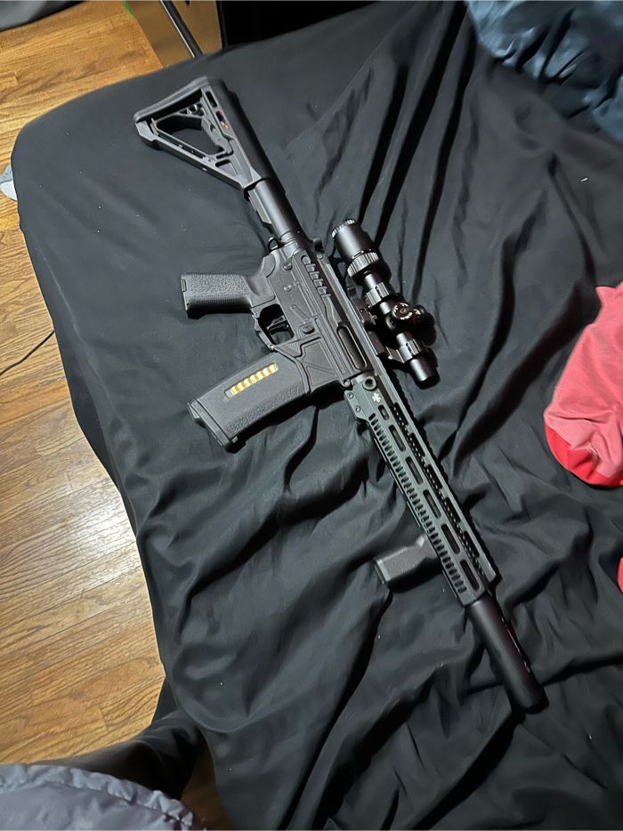 Come with gun ,3 PTS mags, lipo battery and charger, Lancer Tactical 1.5-6X20ir scope and speed loader and gun bag! It’s literally brand new probably only 100 shot through it I just was shooting it in my back yard never touched it again. It works flawlessly just don’t got time to go to a field and play . $450 OBO