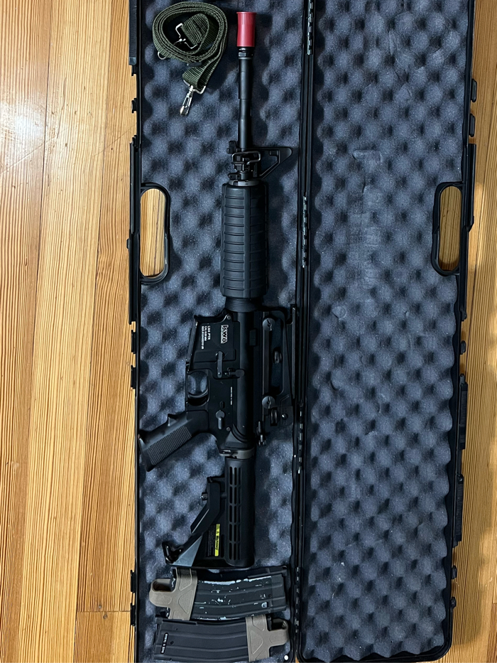 Great condition, lubed regularly and kept in case. Used it a couple light games just shooting around with friends. Solid gun and doesn’t feel like it’s gunna break if you drop it a few times. Love the hard blowback feel and realism factor. Easy to maintain. Love this gun, only selling to make the collection smaller. Comes with 4 mags ( no leaks…50$ each on evike) 0x zoom scope seen in pictures, and sling. Hard Case also included. If you’re looking to trade, just send some pics and info about your stuff. I’m open to anything if the deal is good for both parties. Asking 425$ OBO.