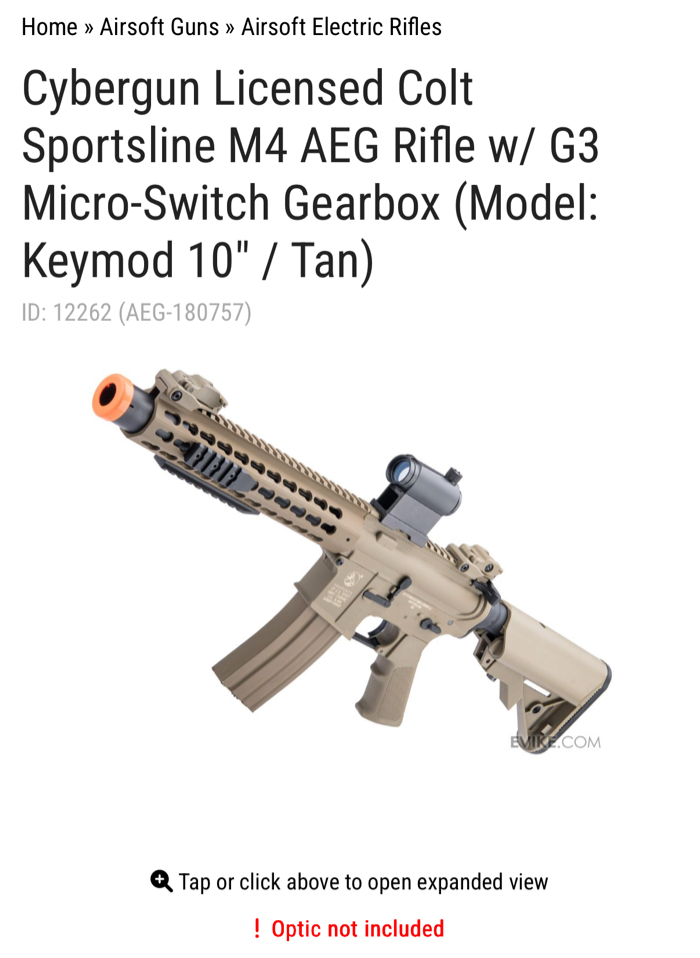 Cybergun Licensed Colt Sportsline M4 AEG Rifle w/ G3 Micro-Switch Gearbox (Model: Keymod 10" / Tan)