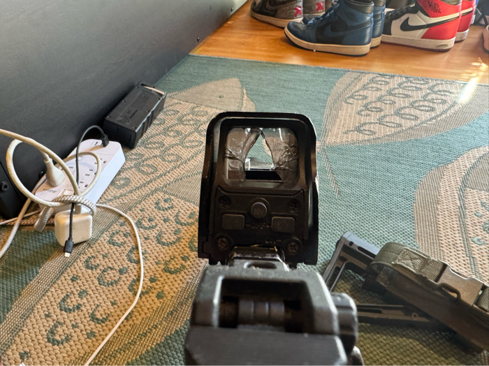 The rifle has a tuned speed trigger making shooting fast a breeze. It’s extremely comfortable to hold and it’s a very compact build. Also has a flashlight with a top mounted pressure pad. Shoots 400fps at 100psi with a .25g bb and up to 60rps on full auto. FPS range is 300-430. Only downside is the eotech is shot out. Comes as shown with all attachments just without the magazine. Tracer unit, battery charger, battery, fcu, airtank, regulator, and line can be added for extra.