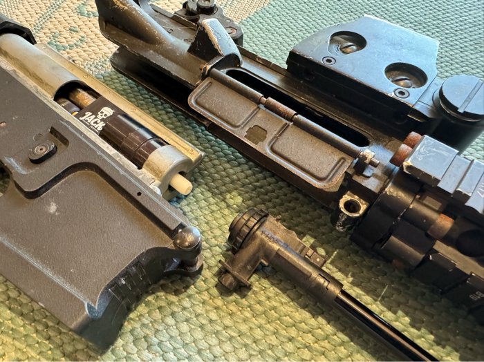 The rifle has a Polarstar Jack installed to power it. This is the most beginner friendly HPA engine if you were to instal, test, and tune it yourself but if you’re buying it from me, it’s all been done for you. Has a great rate of fire and is a great pick for beginners and experienced players alike. It’s paired with the stock Krytac hopup Unit, a madbull bucking, and a madbull inner barrel which shoots phenomenally.
