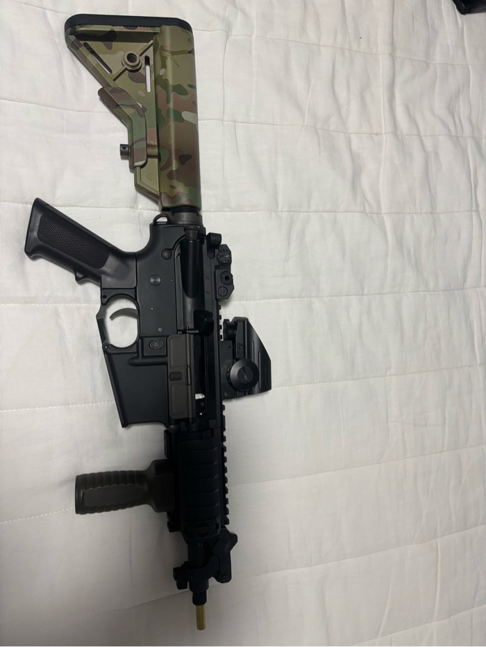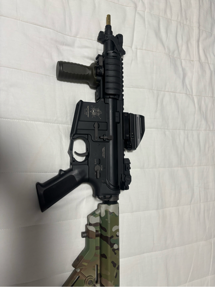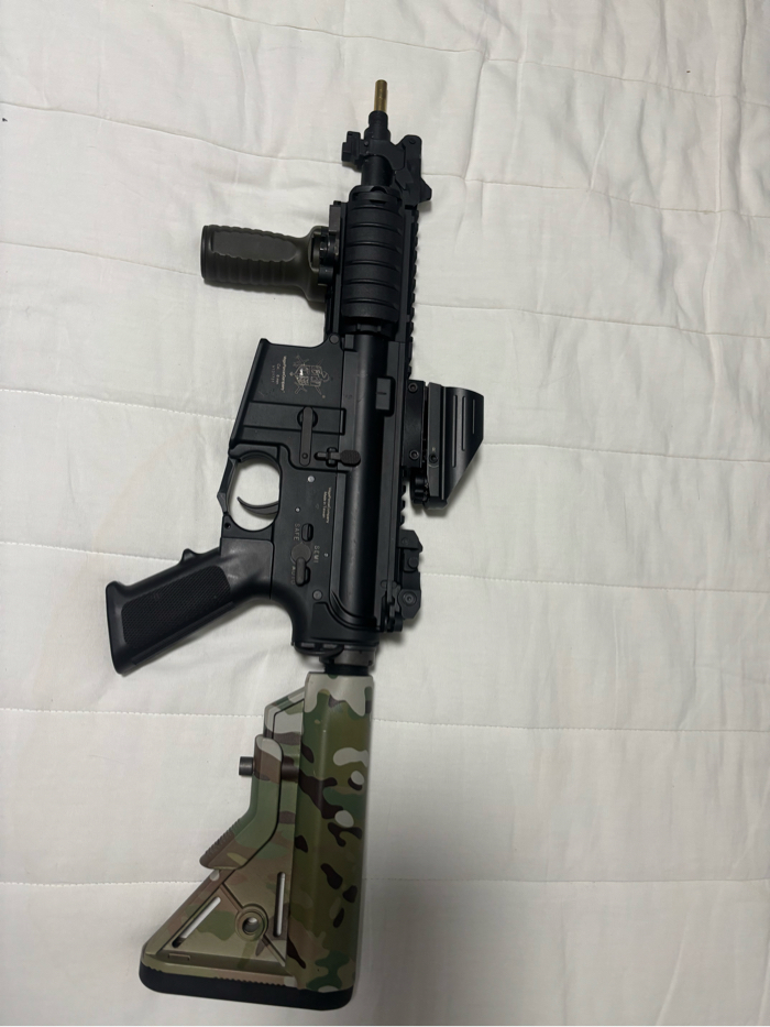 A bit older but recently rebuilt with new piston and added a double eagle programmable mosfet. Shoots just over a joule. Sight and grip not included.