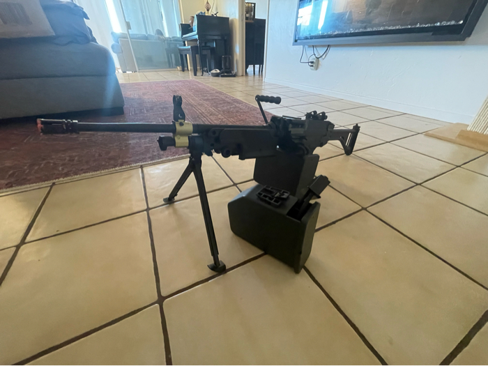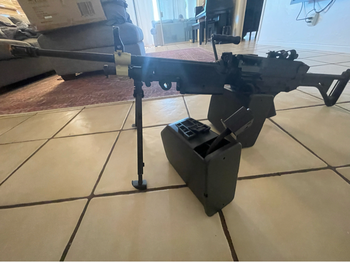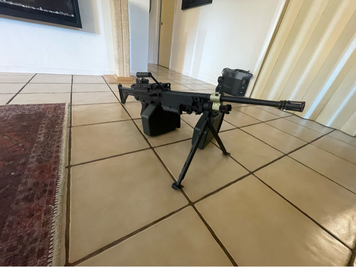 Realistic FNH Licensed metal Receiver, barrel assembly, feed cover, and bipod