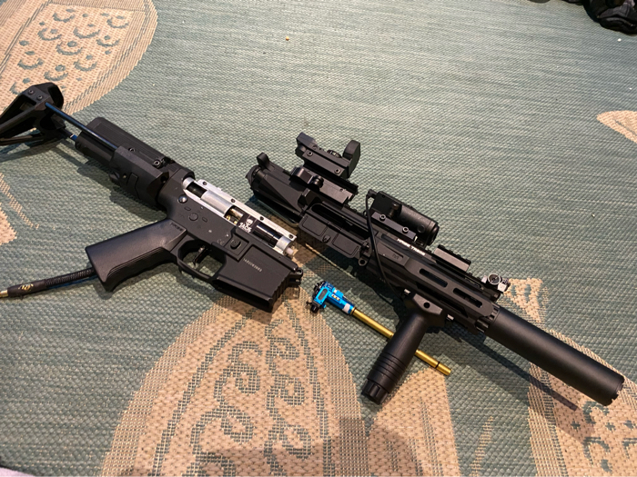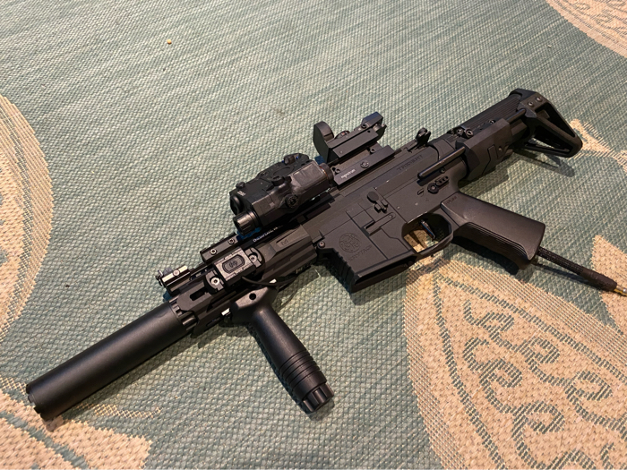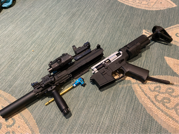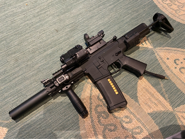 This one of the most built guns internally and externally Iv ever sold, this beast will make everyone on the field fear your presence. It is an absolute menace for both CQB and outdoor play. The full metal Krytac base rifle is incredibly durable and will never fail you. Theres a pressure pad mounted to the left side of the rifle to activate the working Peqbox flashlight and lasers. The internals are all top of the line ensuring the best accuracy, range, and consistency. Shoots 375fps at 100psi with a .25g bb and up to 60rps on full auto. Fps Range is 250 - 420. Comes exactly as shown with all attachments minus the magazine. Battery charger, battery, fcu, airtank, regulator and line can be added for extra.