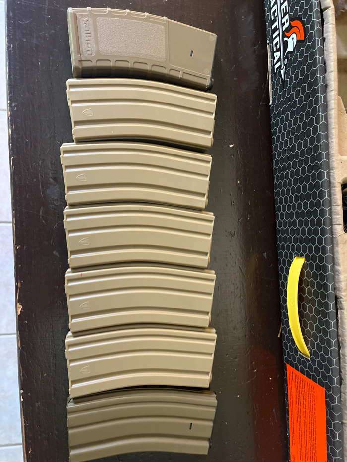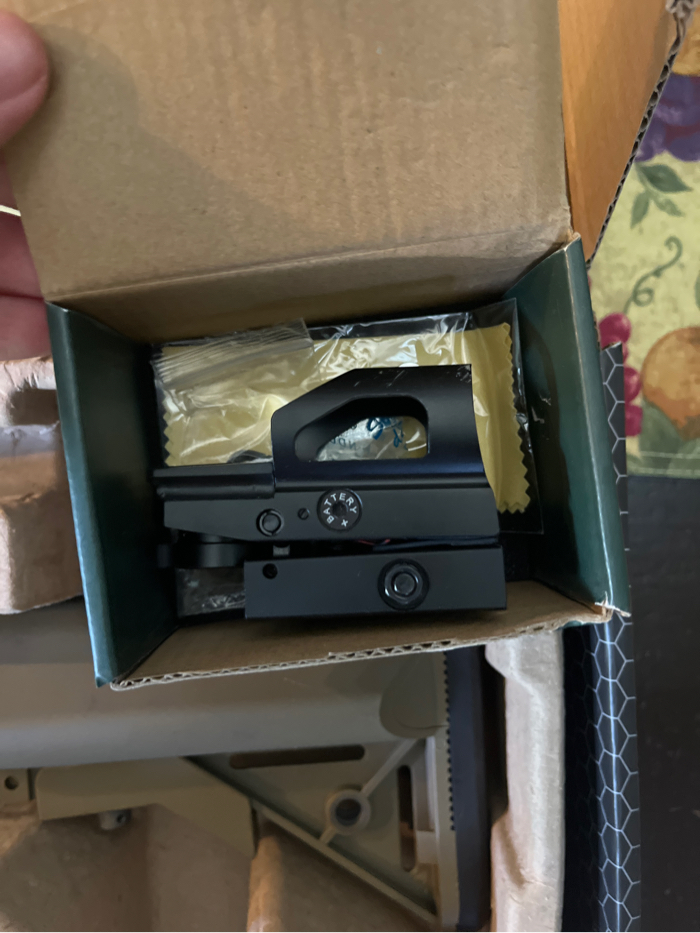 - electric semi/full auto - good condition - aftermarket battery - 7 mags (one metal six plastic) - 24 mm green/red reticle