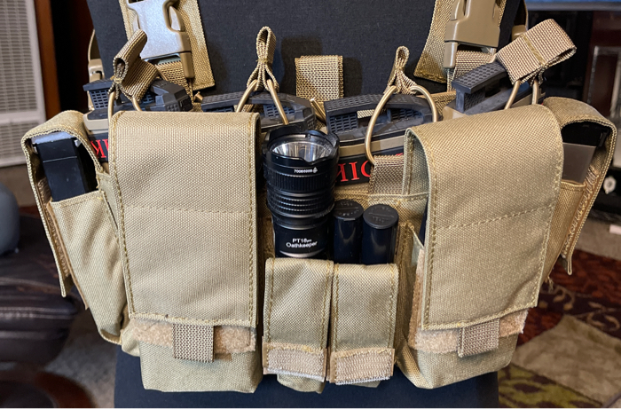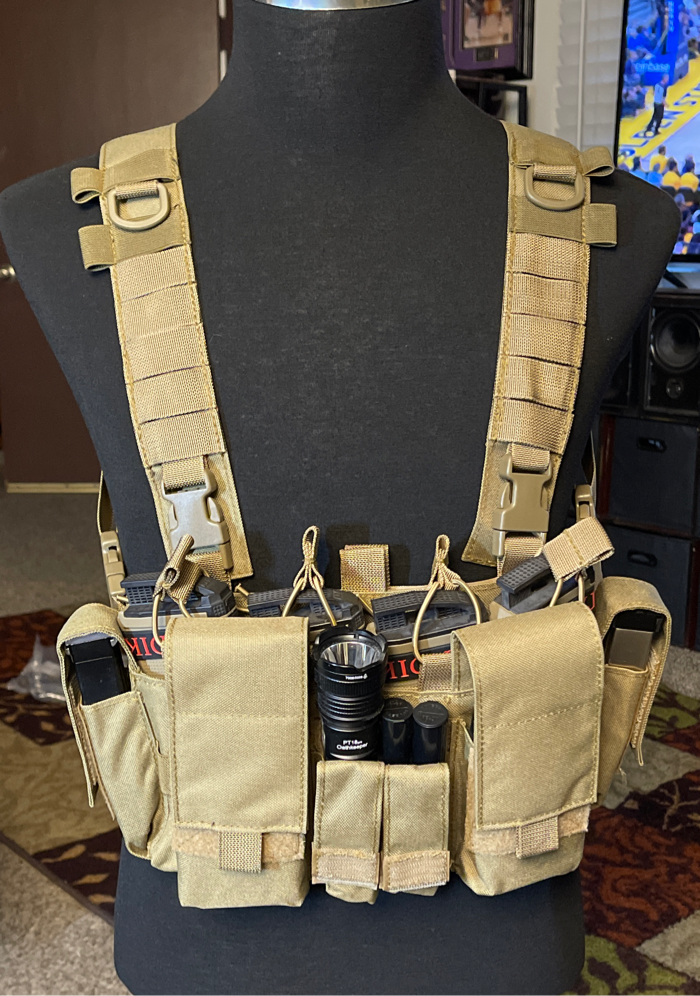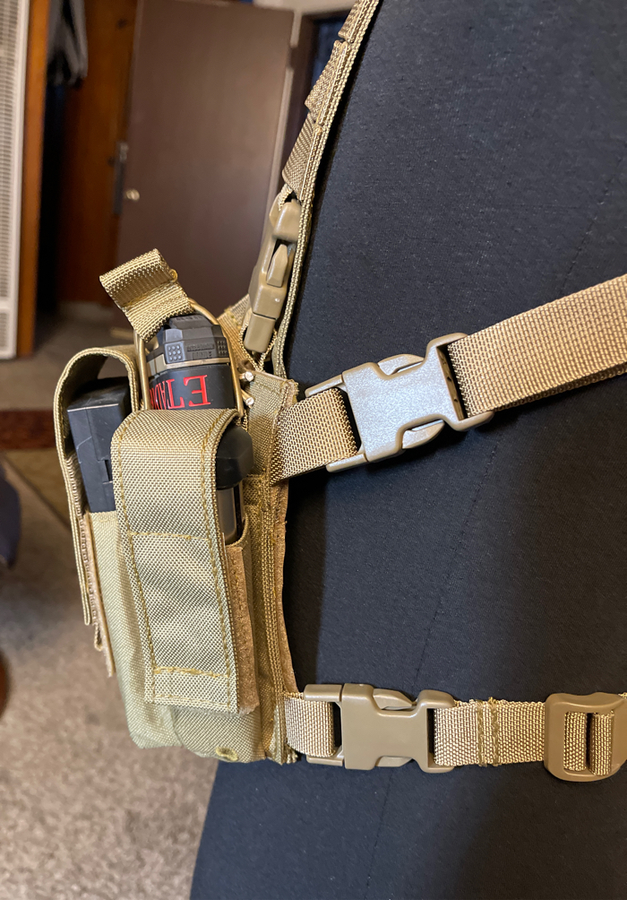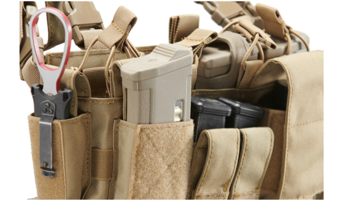 This chest rig is capable of holding a lot of magazines while also being lightweight and low profile compared to a tactical vest