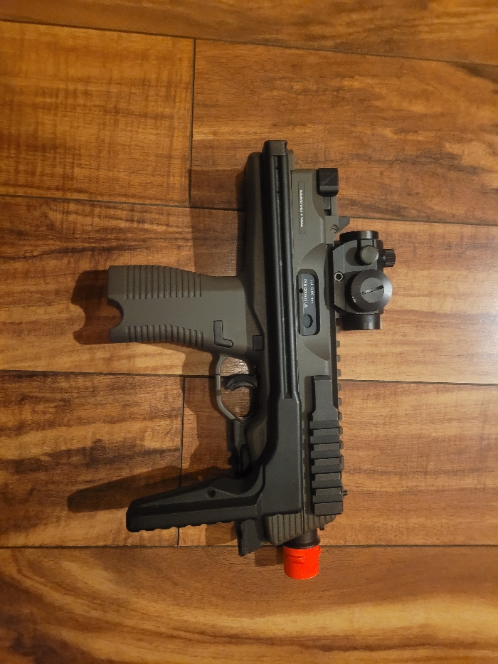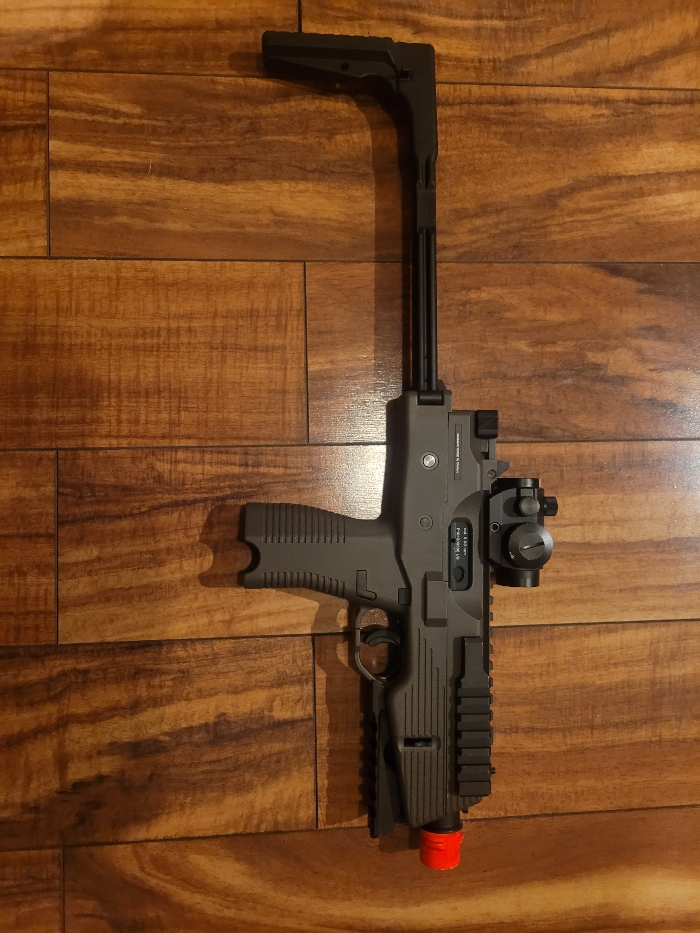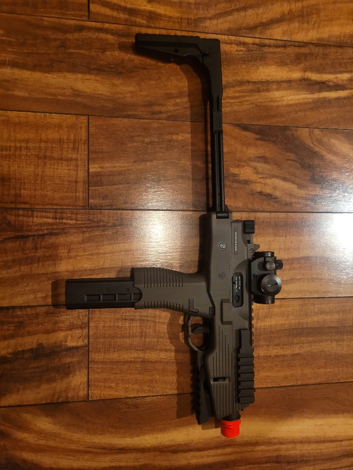 Mp9 comes with a Lancer tactical Red/Green dot. And 1 mag