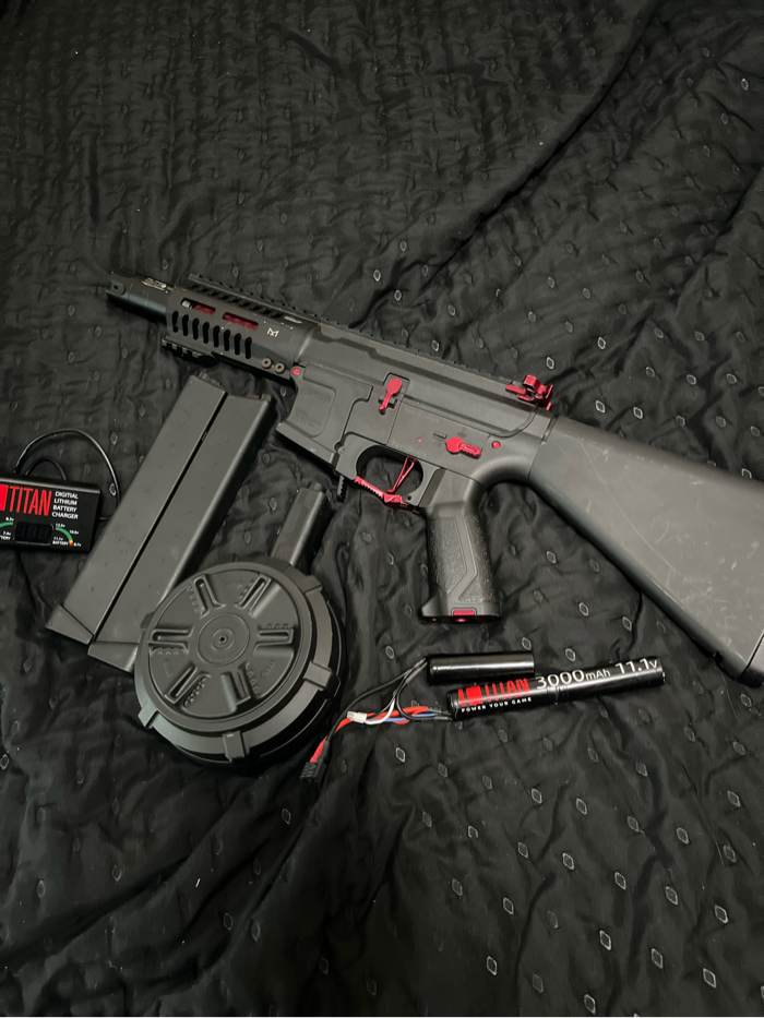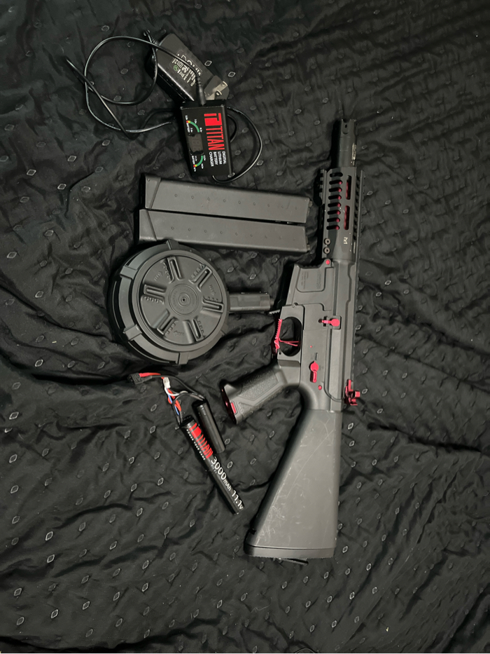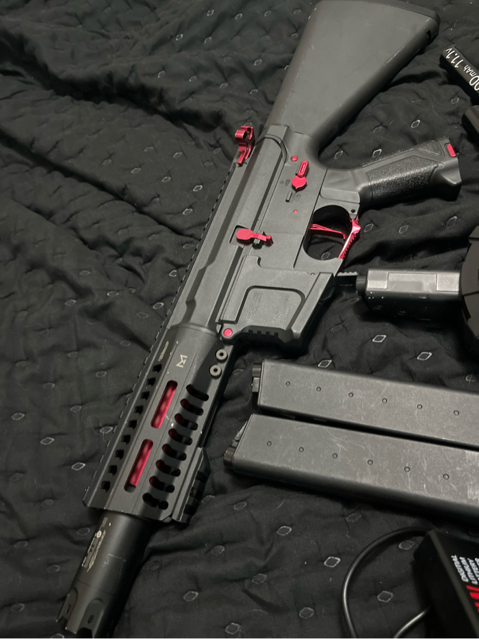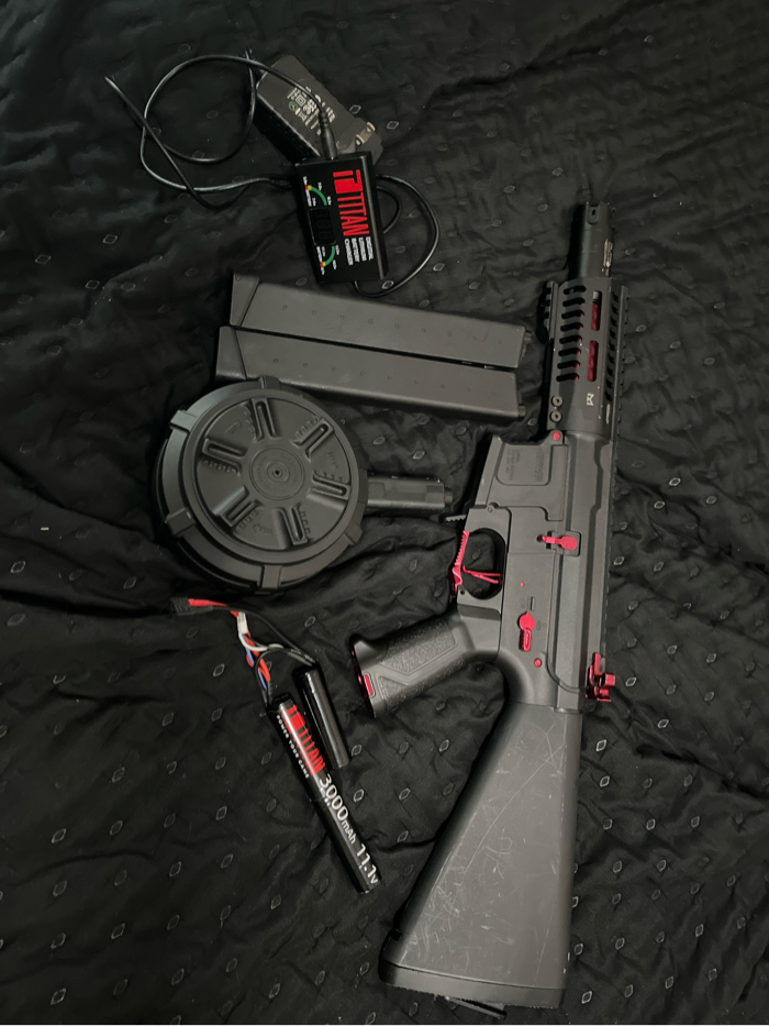 Selling my arp9, selling with titan charger/battery, two magazines, 1 drum mag, bb tracer, stubby stock, and gate titan inside the gun. Lmk if interested I’ll send videos of gun shooting please don’t waste my time.