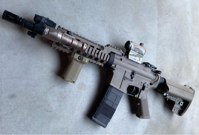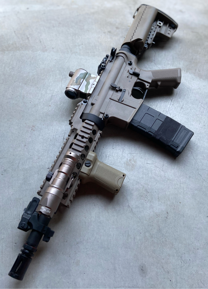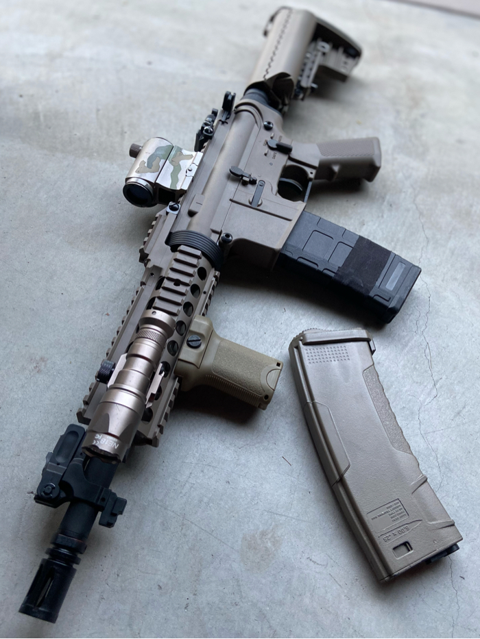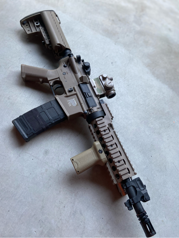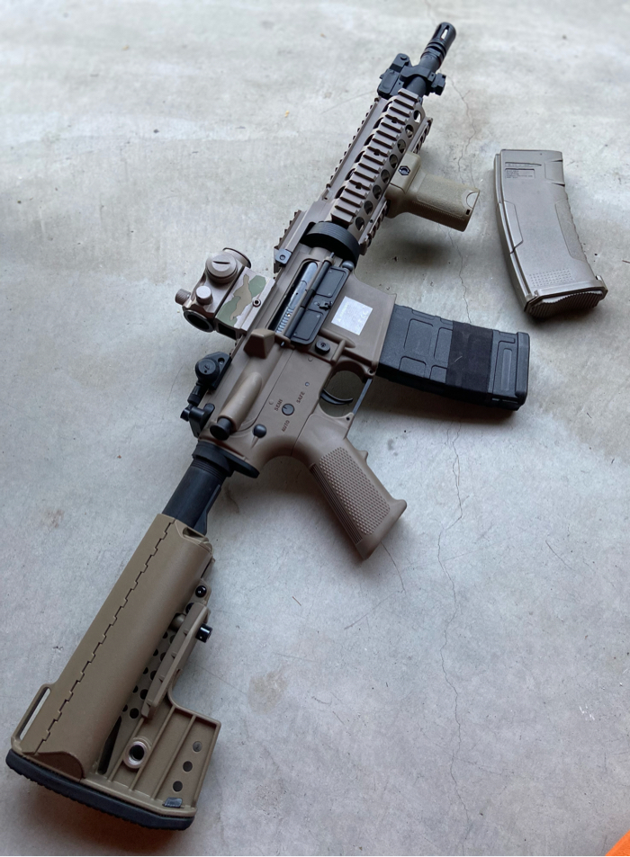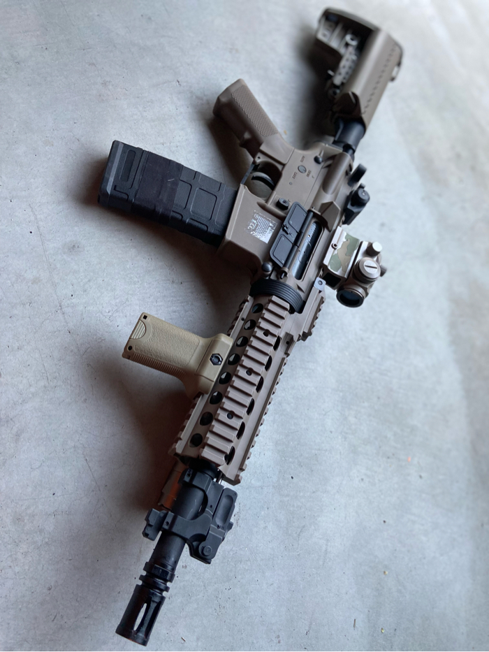 For sale is a Mint condition M4 SBR in dark earth WITH ALL ATTACHMENTS/ACCESSORIES. High performance AEG with an upgraded full metal LIPO ready gearbox.