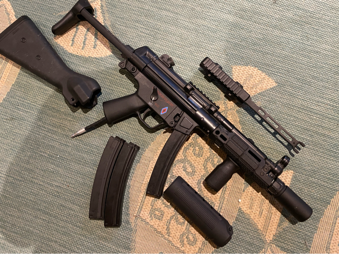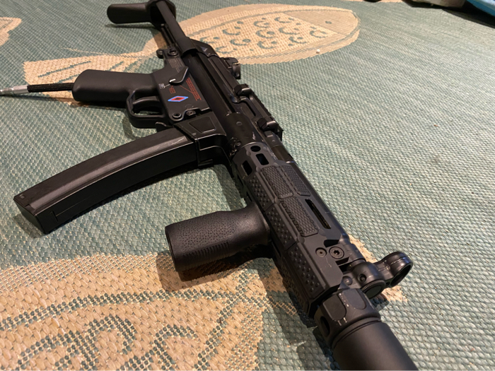 Selling my Custom Build Polarstar Jack MP5. It will come with everything shown in the pictures including all the extras: full stock, Midwest industry’s picatinny/m-lok upper rail, polymer foregrip, and 3x mags. This is hands down one of the most fun guns Iv ever played with. It has a realistic charging handle so you can MP5 slap it all day long. Most fields allow SMGs to use burst so this rifle has been tuned for semi, and 3rd burst but can be switched to semi and full auto on request. Full metal construction and it’s one of my personal favorites in my collection. Shoots 350fps at 110psi with a .25g bb and up to 45 rounds per second. FPS range is 280-400. Come as shown with all attachments and 3x midcap magazines. Tracer unit, battery charger, battery, fcu, airtank, regulator, and line can be added for extra.