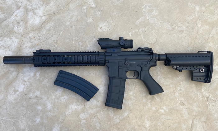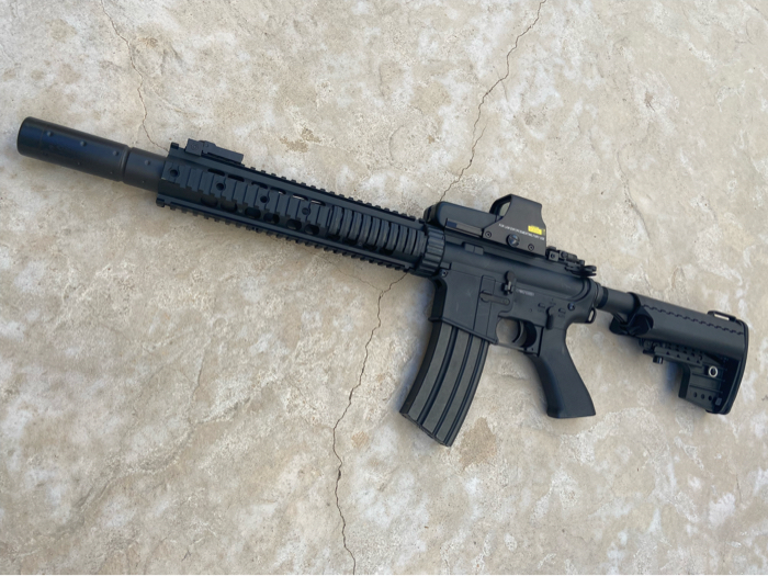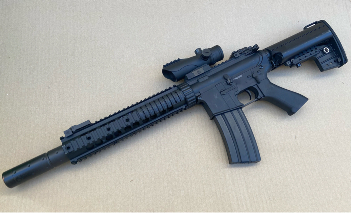 Selling a High performance M4 DMR suppressed with a full metal built gearbox. Durable and reliable build quality. Quality Tokyo Marui spec v2 gearbox.
