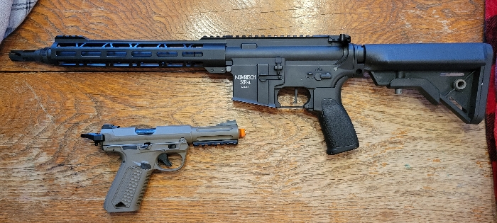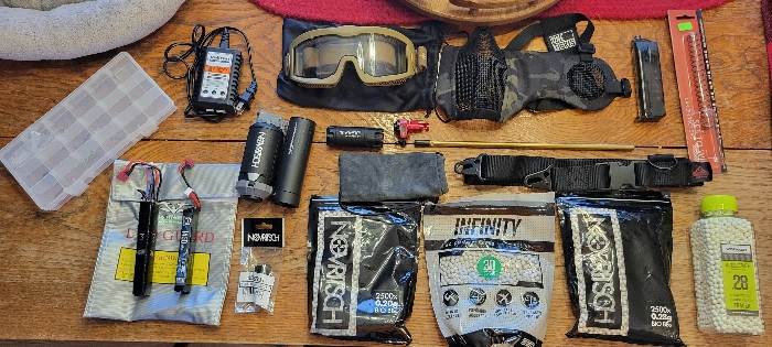 $665 Like new all STEEL version Novritsch SSR4 and AAP pistol with lots of accessories. SSR4 has a Prometheus tight bore barrel plus stock barrel and maple leaf bucking, 3 magazines. ACCESSORIES- 2 LIPO batteries, charger and fire bag, Valken goggles and mask, Novritsch grenade, Novritsch silencer with quick attach and barrel sock, brand new Maxx Hop M4A (didn't get around to installing it), bifrost tracer, lots of BBs and extra spring, sling, speed loader, and some extra parts and nozzles and more. Everything works great and gun has been very reliable, selling bc I don't go anymore. NO TRADES local pick up is preferred but not a must. Any questions please ask! $665