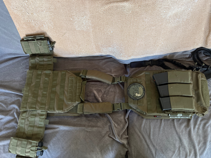 comes with 7 mid cap mags 1 high cap. also has quick disconnects and a micro dangler. 1 point sling also being thrown in.